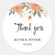 Agregue un toque de romance y sofisticación a los favores de su boda con esta etiqueta redonda clásica "Gracias" de flores de melocotón y follaje de lámina dorada. Con un delicado diseño floral en tonos suaves de melocotón y acentuado con follaje de lámina dorada brillante, esta etiqueta es la forma perfecta de expresar gratitud con estilo.
