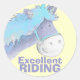 Niños ecuestres alaban a los pegatinas "Excelente Viaje". Pegatina amable de felicitar a los jóven jinetes por su gran actuación. Perfecto para padres de jóven jinetes y centros de aprendizaje ecuestre y niños en campamentos escolares. Pintado y diseñado exclusivamente por Sarah Trett.