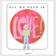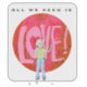 Celebra el amor y la positividad con este vibrante pegatina que presenta un círculo rojo audaz adornado con patrones abstractos. La palabra "¡AMOR!" aparece en letras grandes y rosas, mientras que una figura elegante con el pelo gris, con una camisa verde símbolo de la paz y jeans azules, hace un alegre signo de paz. Encima, el mensaje edificante "TODO LO QUE NECESITAMOS ES" en letras negras realza el ambiente retro. Perfecto para añadir un toque positivo a sus pertenencias, este pegatina encarna temas de amor, paz y armonía. -
