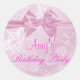 Este moderno pegatina de cumpleaños de personalizable cuenta con una proa rosa sobre un fondo floral rosa. Personalizar añadiendo tus detalles en la letra de tu elección!