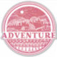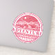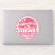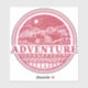 La pegatina de aventura es un diseño original de The Art of Camping Now. Incluye una tienda de campaña antigua en el bosque rodeada de un diseño de líneas.