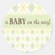 Pegatina de Baby Shower Neutral Green Yellow Argyl