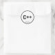 Pegatina C++, redondo/mate. Diseño negro sobre blanco.