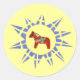 El diseño de este pegatina es de un cuadro de acrílico y de un caballo de madera tallada pintado por Julia Morrill