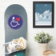 Pegatina azul discapacitado de coches redondo con símbolo de silla de ruedas con símbolo de persona y símbolo de corazón de amor rojo. Si necesitas más pegatinas como este, por favor envíame un mensaje a través de Zazzle.
