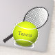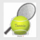 Pegatina de Concurso de Diseño de Racquet de bolas de tenis con texto opcional, disponible en varios tamaños.