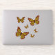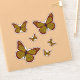Patrones inspirados en la decoración tradicional china adornan las alas, el cuerpo y los puntos de esta mariposa monarca en tonos rojos, dorados y marrones.
