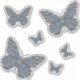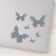 Las alas y el cuerpo de una mariposa monarca están decorados con diseños inspirados en los patrones de los suéteres que se encuentran en los países nórdicos de Noruega, Suecia y Finlandia, con motivos como copos de nieve, montañas y árboles verdes en blanco, azul, verde y gris con acentos rojos brillantes.