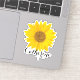 Un diseño luminoso y soleado con una foto de primer plano de un girasol con una plantilla de primer nombre.