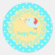 Este pegatina vibrante es una alegre mezcla de un pájaro que sostiene un sobre en sus puntos de polka beak, azul y blanco y su patrón de encaje amarillo. El texto "Happy Mail" puede ser eliminado o reemplazado por el texto de su elección.