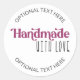 Hecho a mano con la etiqueta de paquete Love. Este pegatina de correo de pequeñas empresas es fácil de personalizar si desea añadir texto adicional como su nombre de negocio, su sitio web, gracias por su pedido o su dirección de devolución, por ejemplo. El diseño está escrito con caligrafía elegante y tipografía caprichosa. Si desea mantenerlo sencillo con sólo "hecho a mano con amor" y sin una redacción personalizado, simplemente elimine el texto de ejemplo y deje los cuadros de plantilla en blanco. Si desea cambiar los colores, haga clic en "personalizar más adelante".