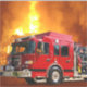 Bomberos de emergencia en el lugar del incendio de la casa