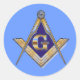 Pegatina de fondo azul claro y la plaza Masónica y la brújula.