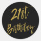 Pegatina del cumpleaños 21º de negro y Relieve metalizado dorado. El pegatina de cumpleaños 21 utiliza la popular tipografía de Relieve metalizado de oro. Este pegatina se utiliza para sellar los sobres del 21º cumpleaños.