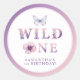 Agregue un toque dulce y final a su primera fiesta de cumpleaños con temática de flores silvestres con esta pegatina redonda “Wild One”. Con flores pastel, una mariposa suave y texto personalizado, es ideal para sellar bolsas de favores, decorar regalos o agregar encanto a notas de agradecimiento.
