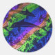Pegatina de arte decorativo con diseño original de arte en color fluorescente fotografiado bajo la luz negra de delfines en estilo marino inspirado en las antiguas imágenes del Egeo de Creta Minoana y Grecia Micenaea.