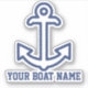 Este pegatina de estilo "die-cut" es la forma perfecta de crear su propia calcomanía para etiquetar su equipo de navegación o hacer una calcomanía para el parachoques para decorar su coche o su camper. Presenta un ilustracion del ancla de un barco simple en azul marino y blanco con tu propio texto en azul marino a continuación. Personaliza esto con el nombre de tu barco o el nombre de tu lago favorito. Este pegatina hace un pequeño y grandioso regalo para los propietarios de los barcos.
