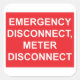 Una hoja de pegatinas de DESCONECTAR METER DE EMERGENCIA para que los electricistas puedan utilizarla para cumplir los requisitos del artículo 230.85, letras E), apartados 1 y 2, del Código Eléctrico Nacional de 2023.