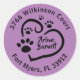 Impresiones de la pata sobre los pegatinas de la dirección de retorno redondo del personalizado cardíaco con fondo de lavanda. Decorada con un bonito corazón giratorio con huellas de pata en el corazón y alrededor. El nombre está impreso en forma de escritura cursiva bonito en el centro del corazón, mientras que la dirección está bien ajustada en un círculo alrededor del diseño central del corazón. Personalízalo reemplazando el nombre y la dirección de ejemplo con su propia información de correo o personalizado.