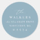 El sello de dirección de retorno redondo incluye su nombre y dirección en letras blancas clásicas con un acento de guión, sobre un suave fondo azul costero. Diseñado para coordinar con nuestro boda de pescado azul costero y colección de eventos.
