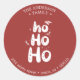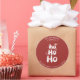 Fondo rojo con escritura manuscrita personalizado "Ho Ho Ho Ho" con el gorra de Santa personalizada con su apellido y dirección de retorno en letra sans serif.