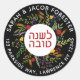 Rosh Hashanah pegatina de coronas florales coloridas con granadas y miel sobre un fondo negro dramático. Shanah Tovah en HEBREW. El Año Nuevo judío desea. Vestir sus tarjetas de regalo o bolsas de regalo y fijar un tono festivo. Una hermosa manera de desear a amigos, familia y clientes un Feliz y Dulce Año Nuevo Judío. Si quieres ver una variación personalizado de este diseño, por favor envía un correo electrónico a BestDressedBread@gmail.com.