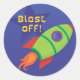 ¡Quítate! ¡A los amigos de su hijo les encantará este pegatina de un cohete unisex! Selle sus sobres o déselos como favores de la fiesta.