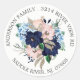 Pegatina de etiqueta de dirección redonda única con un hermoso ramo de flores azules marino y rosadas.
