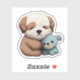 Un cachorro acurrucado al lado de un juguete de lujo, perfecto para mandar a alguien que necesita un poco de amor extra.