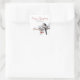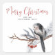 Un pegatina de regalos y tarjetas para sus Navidades presenta un ave acuarela de invierno con Feliz Navidad en escritura manuscrita roja. Personaliza con tu apellido.