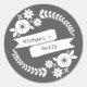 Un pegatina con un ilustracion de flores blancas y vegetación con una pancarta en el centro. Personaliza con nombres de novia y novio. Busque las invitaciones a la boda coincidentes y más en Jill's Paperie.
