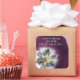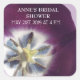 Pegatina original de la ducha de novia con fotografía floral. Fotografía de la flor de tulipán morado, en un color de fondo personalizado. Es fácil agregar el texto de su personalizado.
