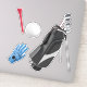 pegatina de vinilo cortado por personalizados con una imagen de una bolsa de golf negra, guante de golf azul, pelota de golf blanca y tee rojo. Ver toda la colección de Pegatinas del Día del Padre en los INVITES | Sección Pegatinas y etiquetas.