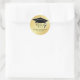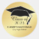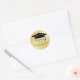 Pegatina de graduación de oro con texto negro y tabla de mortero. Y luego sigue el nombre del graduado y la escuela secundaria o la universidad. Elegante pegatina para usar como sello para sobres en anuncios de graduación y invitaciones de fiesta de graduación. Plantilla fácil de personalizar.