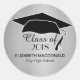 Pegatina de graduación plateado con texto negro y tabla de mortero. Y luego sigue el nombre del graduado y la escuela secundaria o la universidad. Elegante pegatina para usar como sello para sobres en anuncios de graduación y invitaciones de fiesta de graduación. Plantilla fácil de personalizar.