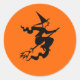Pegatina redondo mostrado con una huella de bruja de Halloween. Personalizar este artículo o compra como está. com.
