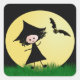 ¡Feliz Halloween! ¡Den a algunos pegatinas lindos esta Halloween! Esta imagen amigable para niños muestra a una linda chica bruja y a su murciélago mascota divirtiéndose a la luz de la luna llena.