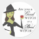 Una encantadora bruja verde quiere saber si eres una Buena bruja o una Mala bruja en este divertido pegatina - ¡genial para fiestas de Halloween o cualquier otra celebración de brujas que puedas estar teniendo!