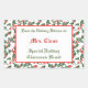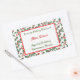 Pegatinas de hormigón o enlatado editables con letras rojas y verdes en un patrón de vacaciones retro de holly verde con bayas rojas brillantes.