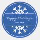Pegatina de invierno del feriado azul y blanco con copo de nieve.