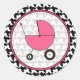 Un pegatina con el ilustracion de un carro de bebés rosado caliente dentro de un marco de círculo a juego. Fondo de una pataleta negra. Busque artículos similares en la sección "Baby Shop" de la tienda Pink Schoolhouse.