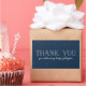 Este pegatina azul marino presenta un marco de estrellas o nieve junto con un elegante tratamiento tipo "gracias" y un lugar para un texto personalizado