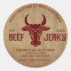 Beef Jerky Personalizado Label Pegatina, diseñado para añadir un toque escarpado y apetitoso a sus productos de carne de vacuno de primera calidad. La tipografía rústica y el fondo texturado evocan un sentido de tradición y artesanía, haciendo que sus productos destaquen con un aspecto distintivo y atractivo.