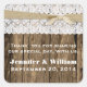 Pegatinas de boda rústicas, con gráficos de fondo rústico de madera templada. Gráficos de elegante encaje blanco, en la parte superior, tiene una cinta doble de doble filo de color champagne atada en un nudo. Personalice el texto en blanco para su día especial. Genial en tus favores de boda. Productos a juego disponibles.