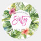 Un hermoso pegatina tropical de cumpleaños número 60 con un diseño de hojas de palma de jungla y letras de pincel. Fácil de cambiar o borrar los campos de texto disponibles para satisfacer sus necesidades personales. Perfecto para el verano/fiestas exóticos/playa y duchas. Por favor visite mi tienda para encontrar artículos coincidentes en esta colección como invitaciones, rsvp, gracias, etc.