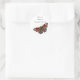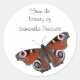 Una mariposa de pavo real europea, Inachis io, pegatina con un color de fondo de personalizable y texto. El texto dice "De la biblioteca de" y un nombre ficticio para cambiarlo por el tuyo.