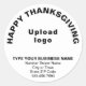 Pegatina de Acción de Gracias para saludar a sus clientes. Pegatina que puede usar como material de marketing para promocionar su negocio y promocionar su marca. Pegatina con el saludo de agradecimiento y con su nombre de negocio para crear conciencia de marca. También puede utilizarlo como etiqueta de producto esta temporada de acción de gracias. La forma pegatina es redonda. El diseño es sencillo, en blanco y negro. Para personalizar de este pegatina, cargue el logotipo de su empresa, escriba el nombre de su empresa o empresa, la dirección y el número de teléfono y compruebe la apariencia. Si la apariencia le resulta agradable, puede realizar su pedido ahora. Si necesita cambiar el tamaño y mover el logotipo y los textos para que encajen en este pegatina o en otras formas y tamaños que elija, cambie la herramienta de diseño. También puede realizar otros cambios de acuerdo con sus preferencias en la herramienta de diseño, como cambiar el color pegatina, el color del tipo de letra y el estilo del tipo de letra. ¡Feliz Día de Acción de Gracias!