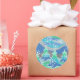 Un moderno y estilizado paisaje invernal con pinos espumosos y copos de nieve brillantes. Pegatina con un diseño de personalizable verde, azul, gris plateado y blanco para que usted pueda personalizar con su propio texto, imágenes e ideas. Dibujo de lápiz de colores realzados digitalmente por Jess Perry.