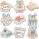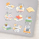 Envase de 9 pegatinas de libros con gatos, perros, café y citas.