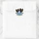 Esta es la versión en color del logo con un par de negros belgas de Anvers en un fondo azul y amarillo.